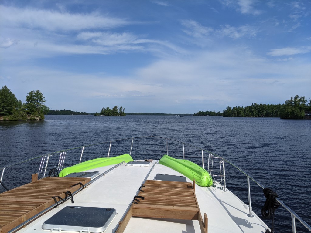The weather was amazing as we crossed Georgian Bay so the biggest challenge for me was staying on course. We haven’t yet invested in an auto pilot (our boat is set up for having one … in fact there was a very old one on the dash but that was tossed since our plan was to replace all wiring and electronic components) so I had to follow those little lines on the chart plotter. It is extremely easy to get off course when you don’t have any navigation aids to go by.
