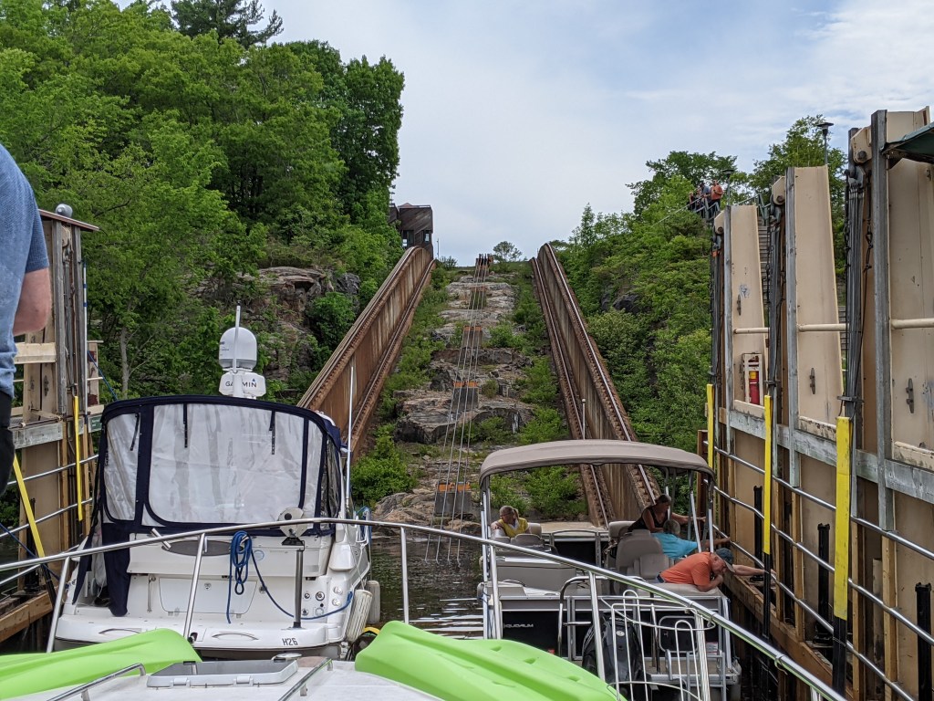 Finally we arrived at the Big Chute. If you have never heard of it is a marine railway that carries boats over land. Very … very cool.