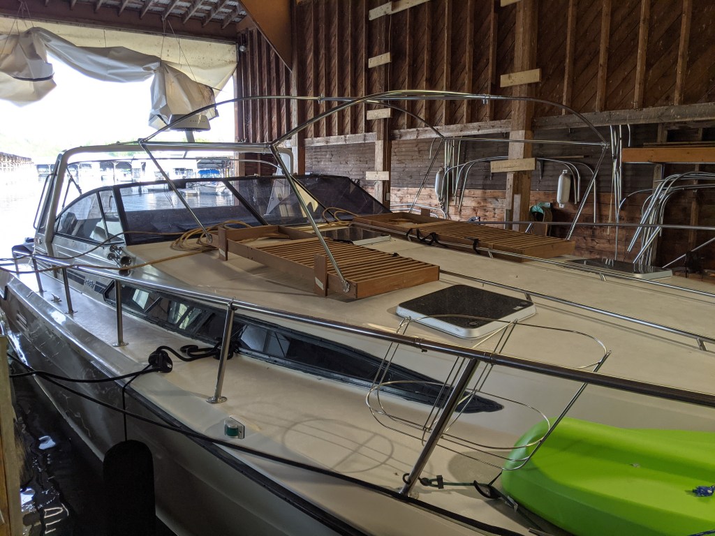 When we bought the boat in August of 2019 (really? It’s been almost 2 years????) she had been sitting at the marina south of Ottawa for at least 5 years. I know they had been doing regular maintenance on her over that time because they showed me the work order. Oil had been changed and she was covered every winter. They did quite a bit of work on the generator and also replaced things like parts of the trim tabs, belts, and various hoses. All of this was great but she had not left the marina for those 5 years.