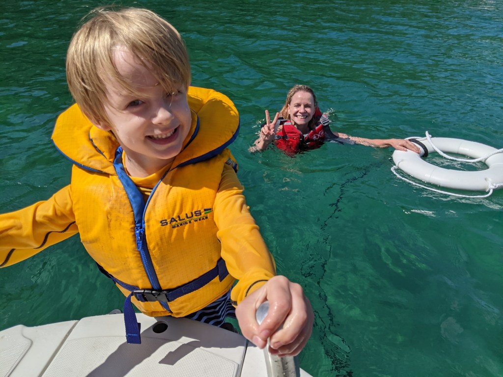 I was lucky enough to be able to take my friend Grahame out for a ride in the dinghy and was very happy to be able to steer all by himself.